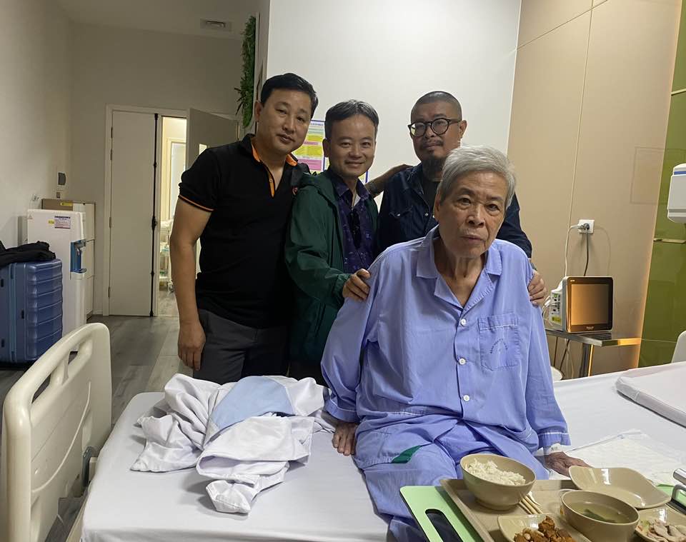 Nhà văn Trần Nhật Minh (đeo kính) cùng đồng nghiệp vào thăm nhạc sĩ Thụy Kha hồi cuối tháng 11/2024. Ảnh: FBNV