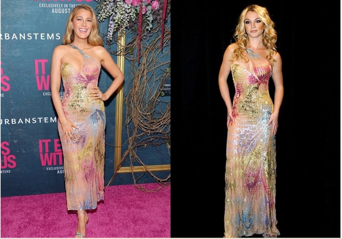 Blake Lively tại buổi ra mắt phim It Ends With Us ở New York (Mỹ): Bất chấp những tranh cãi xung quanh quá trình quảng bá tác phẩm, Lively đã để lại ấn tượng khi xuất hiện với bộ váy Versace cổ điển, thiết kế bất đối xứng màu cầu vồng. Theo Glamour, thiết kế này từng được Britney Spears mặc vào năm 2003. "Đây thực sự là chiếc váy của Britney. Nó xứng đáng được trưng bày tại bảo tàng Smithsonian hoặc Met, nhưng hôm nay nó lại thuộc về tôi. Tôi cảm thấy cực kỳ may mắn", vợ Ryan Reynolds bày tỏ. Ảnh: Eonline.