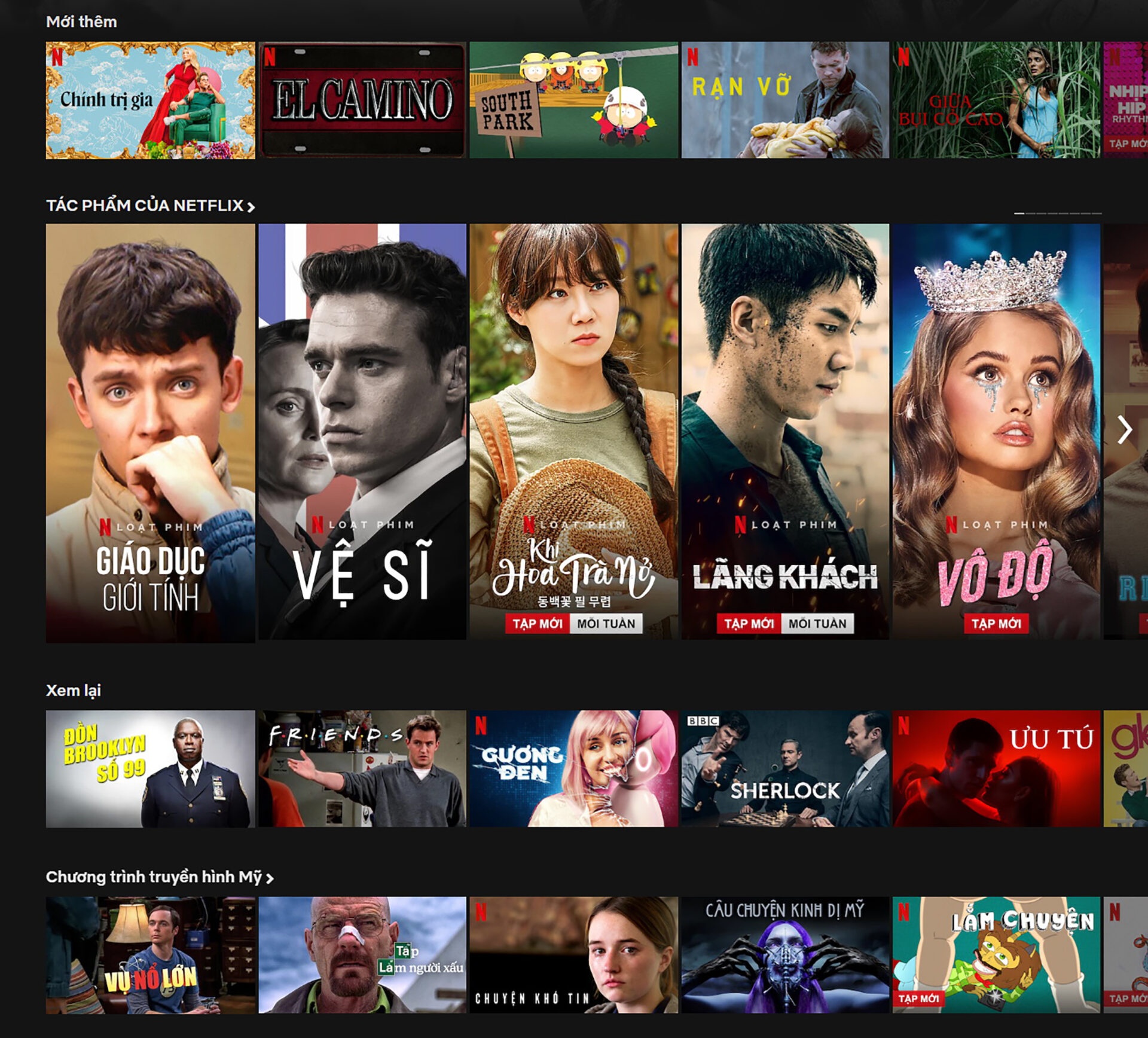 Thiết kế trang Netflix dành cho thị trường Việt Nam. (H́nh: Chụp qua màn h́nh)