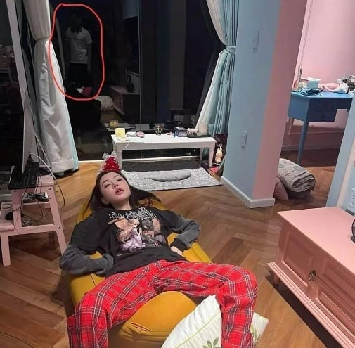 Mới đây, Bích Phương chia sẻ khoảnh khắc được chụp tại nhà trong tư thế nằm "bất động" trên ghế. Cô đính kèm chú thích: "Bức hình tổng kết hoạt động sôi nổi của ca sĩ Bích Phương trong năm 2024". Trong hình ảnh, netizen soi được bóng dáng của người được cho là đàn ông một xuất hiện trong gương.