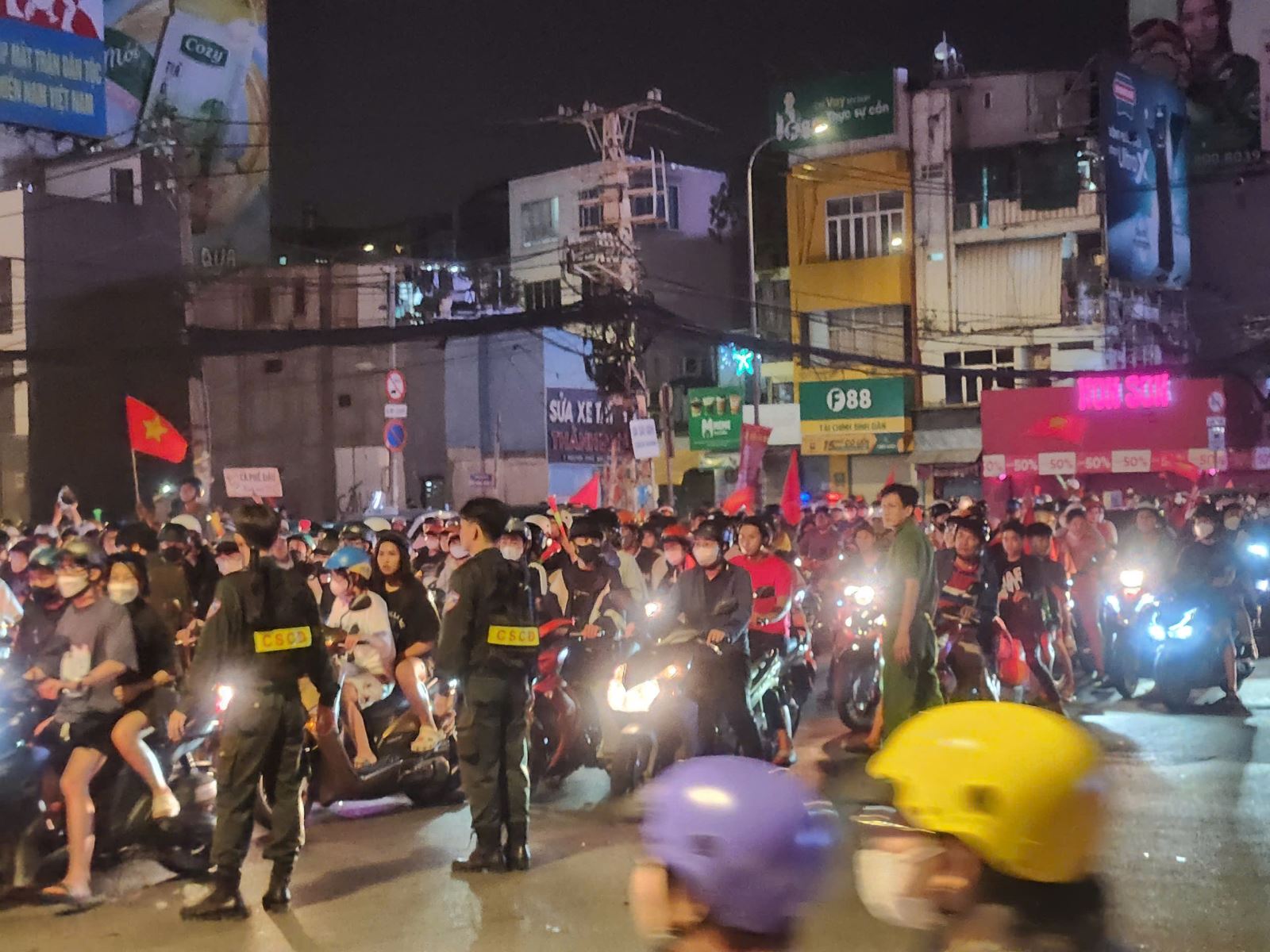 Ngay khi tiếng còi kết thúc trận đấu giữa Việt Nam và Thái Lan vang lên, người hâm mộ TP Hồ Chí Minh đã hò reo xuống đường ăn mừng chiến thắng, khiến hầu như các ngã đường đều tắc nghẽn.
