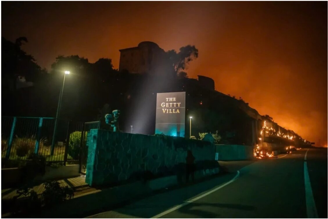 Các video từ hiện trường cho thấy những sườn đồi bốc cháy dẫn đến lối vào Getty Villa, nhưng ngọn lửa chưa lan đến bảo tàng.