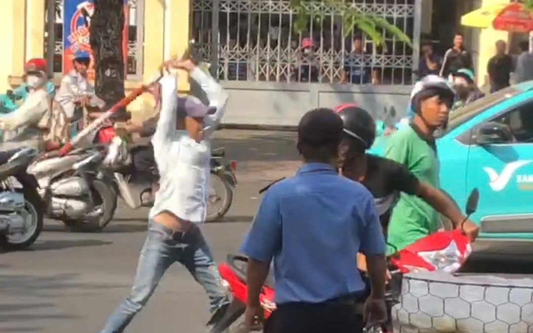 Ít phút sau, Tân quay lại. Ông Long đã gọi thêm 2 xe ôm khác là Trần Văn Minh và Võ Văn Long (cùng 56 tuổi), dùng hung khí, gậy tre đánh anh này. Hai bên la hét, rượt đuổi đánh nhau gây náo loạn. Sự việc được người dân quay video, đăng lên mạng xã hội.
