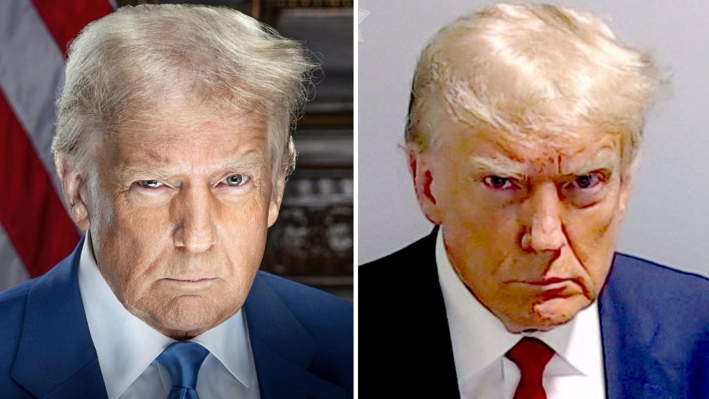 Ảnh chân dung của ông Trump (trái) và ảnh hồ sơ nhà tù. Ảnh: Sky News
