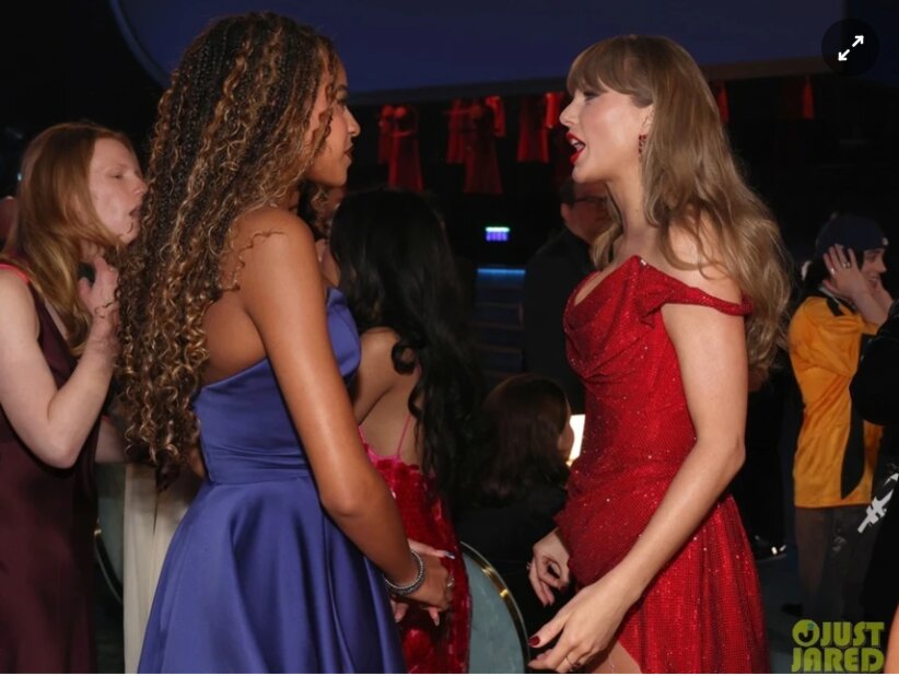 Tại Grammy năm nay, Beyoncé là nghệ sĩ được đề cử nhiều nhất khi góp mặt ở 11 hạng mục. Cô đoạt kèn vàng Album nhạc đồng quê hay nhất với Cowboy Carter. Taylor Swift đảm nhận vai trò trao giải cho đàn chị. Khoảnh khắc hai ca sĩ hàng đầu thế giới chung sân khấu được chia sẻ nhiều trên mạng, thu hút nhiều sự chú ý.
