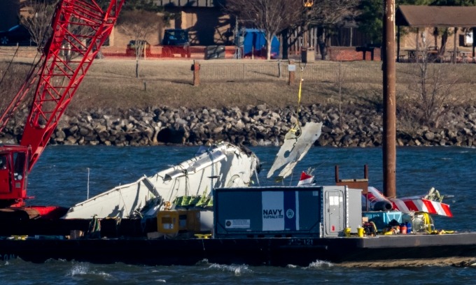Mảnh vỡ từ vụ va chạm máy bay chở khách và trực thăng quân sự được trục vớt từ sông Potomac ngày 4/2. Ảnh: AP