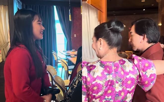 Ngọc Huyền đang nói chuyện thì con gái Kim Tử Long bước tới chào hỏi, khiến ai cũng bất ngờ vì nhan sắc xinh đẹp.
