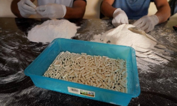 Thành viên băng đảng Sinaloa nhồi các viên thuốc fentanyl ở Culiacan, Mexico, tháng 4/2022. Ảnh: Reuters