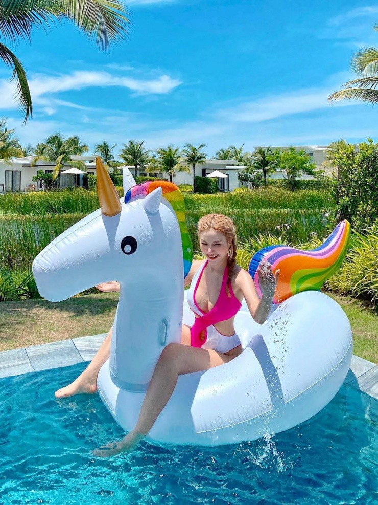 Một năm sau khi chào đón cặp song sinh, Hạnh Sino khiến nhiều khán giả trầm trồ khi diện monokini xẻ cổ sâu đến eo, tôn lợi thế đường cong cùng vòng một đầy đặn.