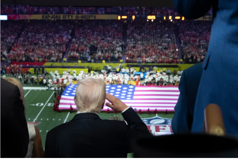 Chiều cùng ngày, trên chuyên cơ Không lực Một, ông ký tuyên bố công nhận ngày 9/2 là “Ngày Vịnh Mỹ”, củng cố thêm lệnh hành pháp đổi tên Vịnh Mexico. Tới tối, ông trở thành tổng thống đương nhiệm đầu tiên dự Super Bowl ở New Orleans, sau khi gặp gỡ gia đình các nạn nhân của vụ tấn công khủng bố vào ngày đầu năm mới tại thành phố này.