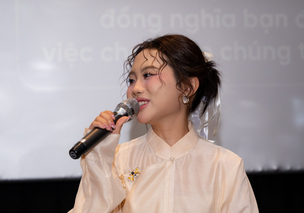 "Tôi bật khóc ngay khi hoàn thành phân đoạn vì không nghĩ mình làm được. Những cảnh quay đòi hỏi chiều sâu tâm lý cũng là một thử thách không nhỏ. Tôi áy náy bởi khiến đoàn phim quay lại nhiều lần", cô kể.