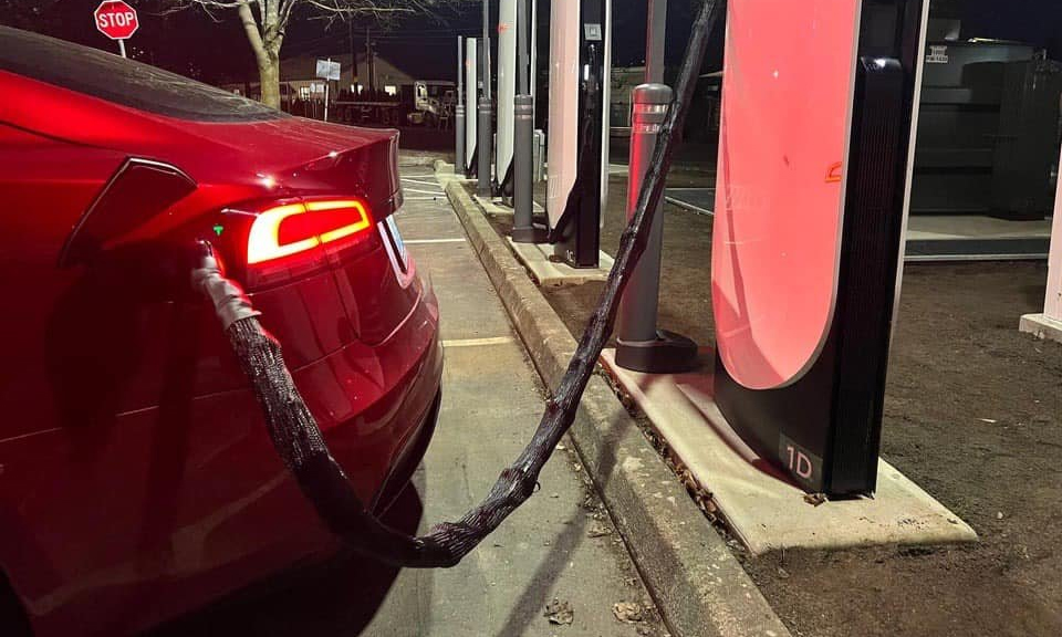 Old  Default Xe Tesla phun mực để chặn nạn trộm dây sạc xe điện