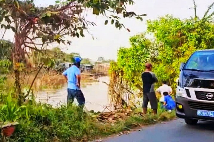 Nghi ngờ ông ngã xuống sông, mọi người xuống mò tìm, phát hiện thi thể nạn nhân dưới đám lục bình, có nhiều vết thương.