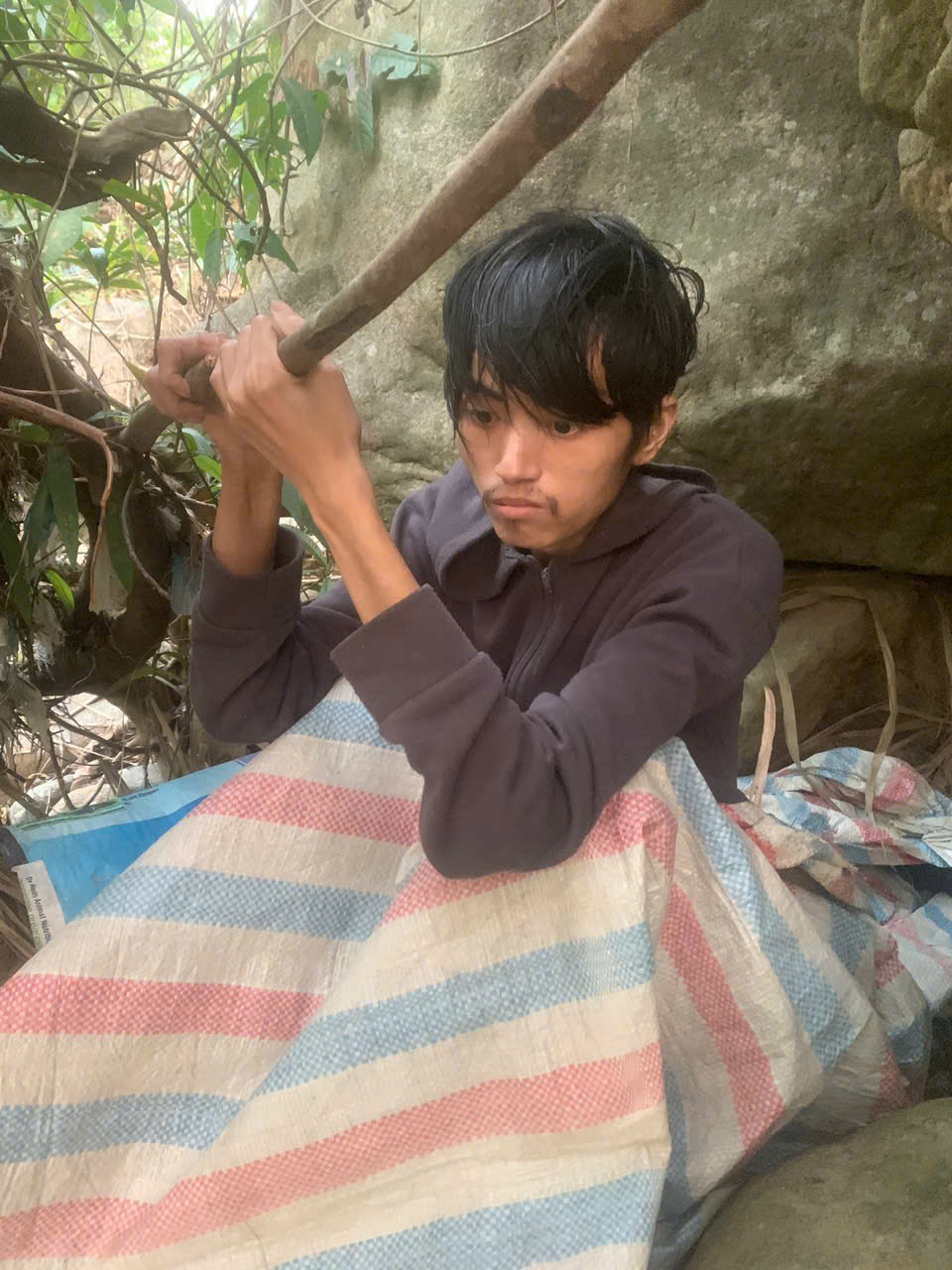 Làm giả giấy tờ để trốn nghĩa vụ quân sự và trốn tránh lệnh truy nã, Vũ Văn Việt đã sống chui lủi trong điều kiện khắc nghiệt, chỉ uống nước suối và ăn nõn cây chuối rừng. Ảnh: CALC
