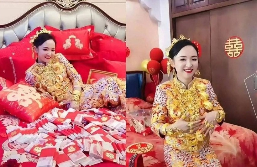 Trong một đám cưới xa hoa ở tỉnh Phúc Kiến, Trung Quốc cô dâu đã nhận được món quà hồi môn "khủng" từ cha mẹ mình, bao gồm 880.000 NDT tiền mặt và 10 kg vàng.
