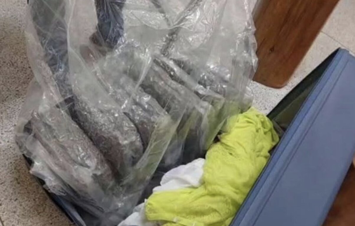 Sau khi kiểm tra, cơ quan chức năng phát hiện 15kg nụ cần sa được hút chân không đặt trong bảy túi nhựa. Ngoài ra, trong vali còn có sáu chiếc áo phông không tay màu xanh lá cây nhạt và một chiếc áo ba lỗ trắng.
