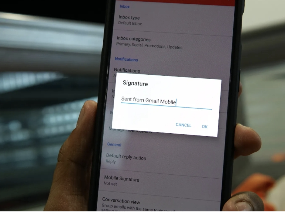 Nếu người dùng đã thiết lập chữ ký cho email và phản hồi mới, Gmail sẽ tự động thêm chúng trên cả web và thiết bị di động. Mặc dù Gmail cho phép lưu trữ nhiều chữ ký nhưng người dùng không thể duyệt qua chúng trên ứng dụng di động. Cần lưu ý rằng nếu người dùng tạo một chữ ký khác trong ứng dụng Android, chữ ký đó sẽ thay thế chữ ký từ web. Hiện tại, không có tùy chọn nào để ngăn Gmail thêm chữ ký vào email gửi từ thiết bị di động, vì vậy cách duy nhất để tránh điều này là xóa chữ ký trên web.