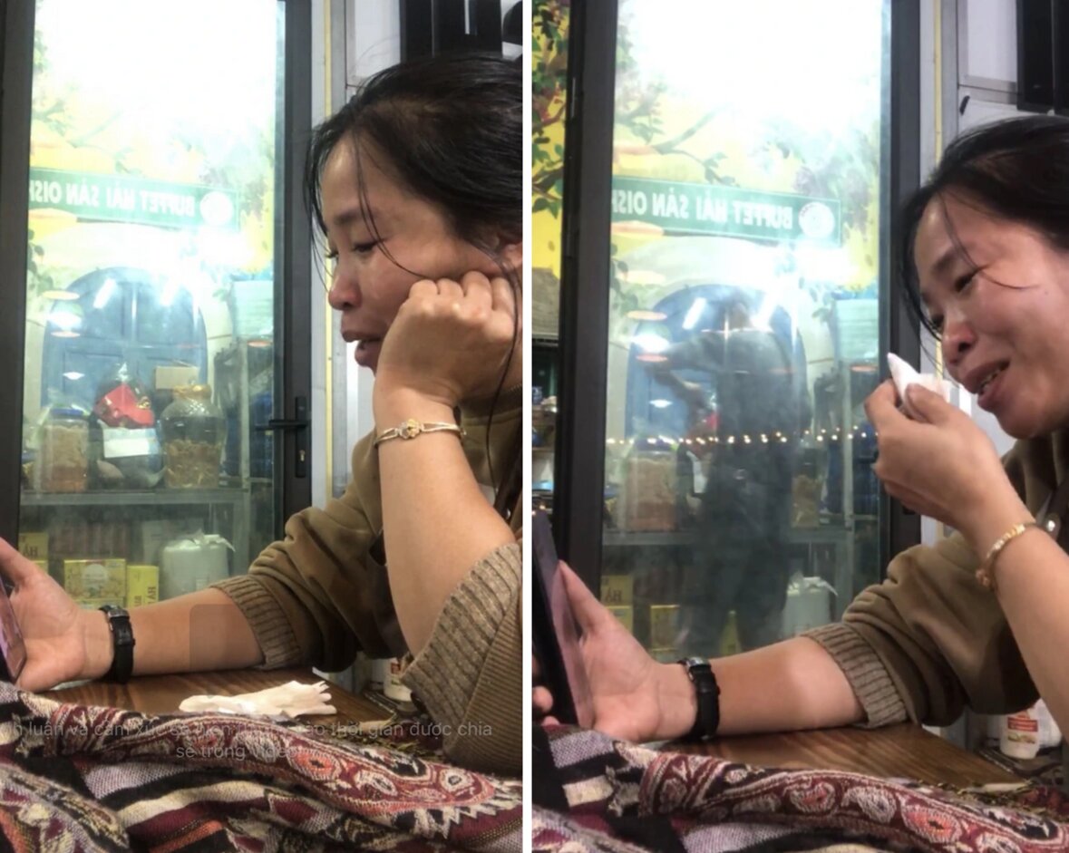 Chị Nam khóc nức nở khi trò chuyện với chị Nga qua điện thoại.