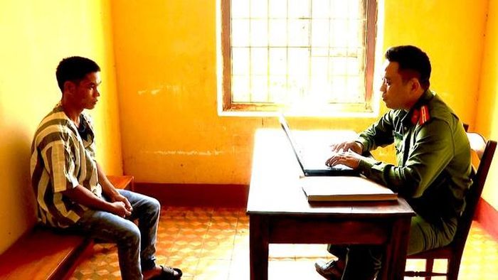 Sau khi đổ xăng đốt vợ, người chồng đến cơ quan công an đầu thú - Ảnh: Công an cung cấp