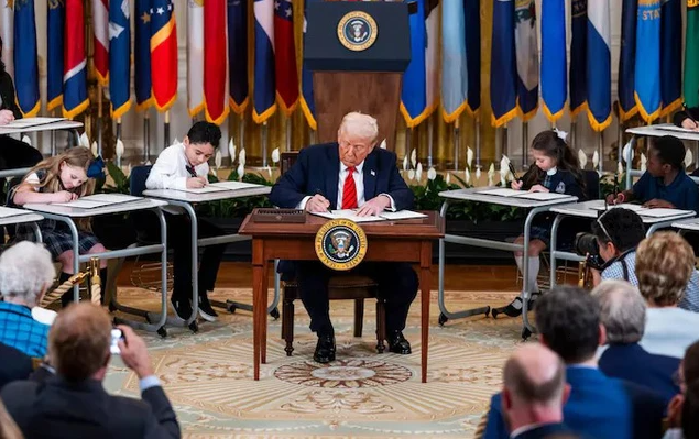 Lần đầu tiên, Tổng thống Mỹ Donald Trump tham khảo ý kiến học sinh trước khi đặt bút ký một sắc lệnh quan trọng.