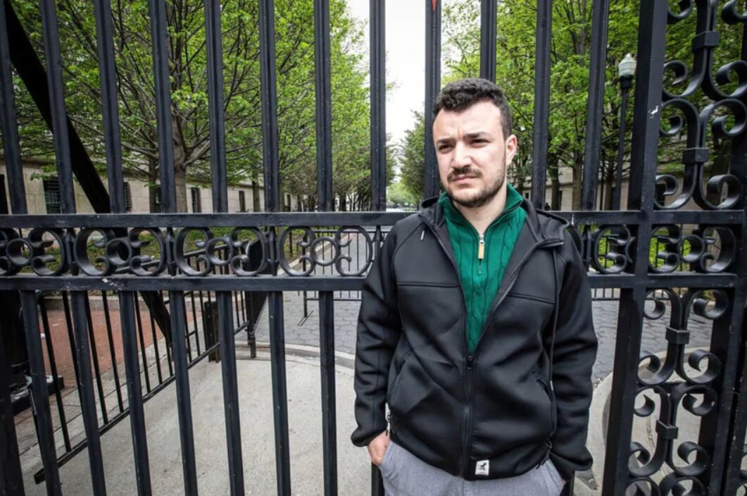 Anh Mahmoud Khalil chụp hình trước trường Đại học Columbia hồi tháng 4-2024. Anh đã bị bắt giữ do liên quan các hoạt động biểu tình ủng hộ Palestine. Ảnh: USA TODAY