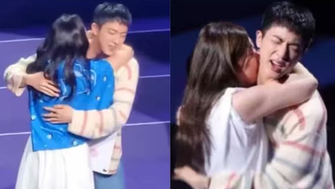 Nam ca sĩ trông có vẻ giật mình và quay mặt đi. Theo Yonhap, sau đó, người phụ nữ đã viết trên blog của mình: "Môi tôi chạm vào cổ anh ấy. Da anh ấy mềm mại quá".