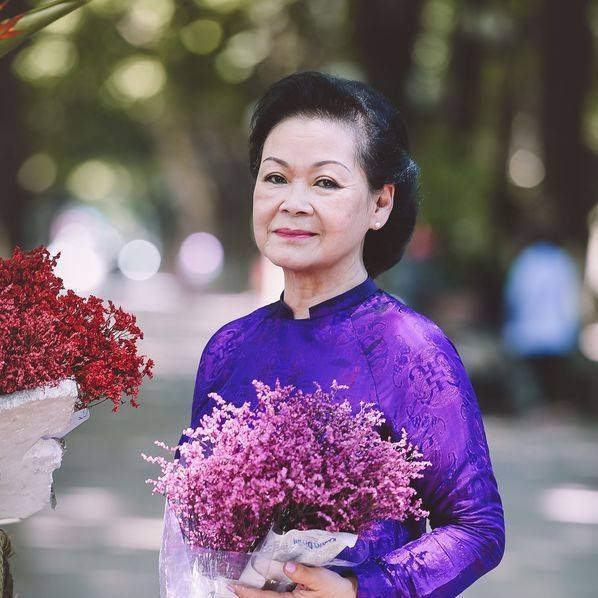 Bức ảnh chụp danh ca Khánh Ly trên đường phố Hà Nội năm 2019. Ảnh: FB DCKL