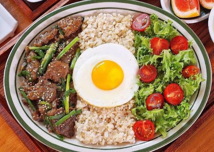 - Thịt bò xào ăn kèm cơm trắng, giúp cân bằng hương vị và tạo sự hài hòa cho bữa ăn.