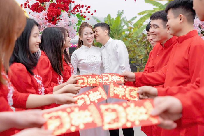 Mùng 9 tháng Giêng, Quỳnh cùng đoàn nhà trai sang nhà gái “bỏ trầu” dạm ngõ. Ngày 18/2 dương lịch, anh chính thức “rước nàng về dinh”.