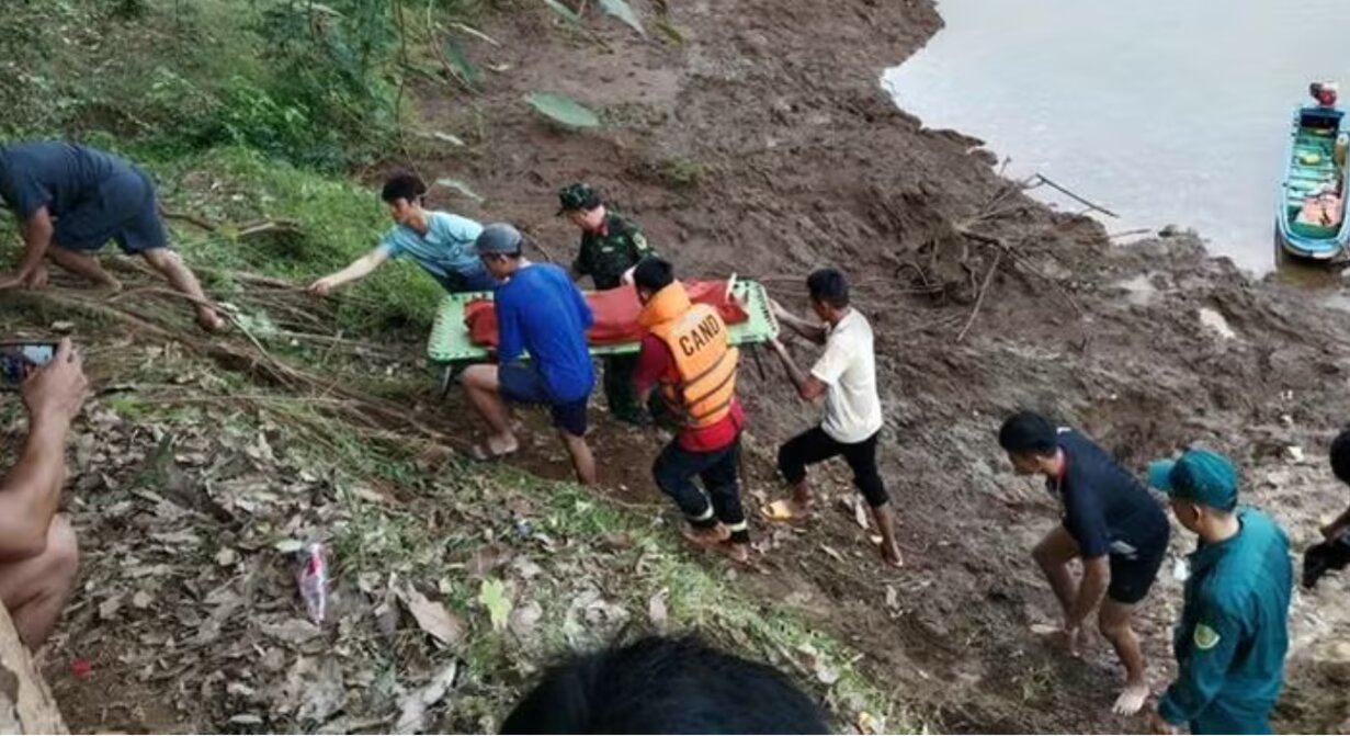 Thi thể 2 cháu bé xấu số được trục vớt lên bờ
