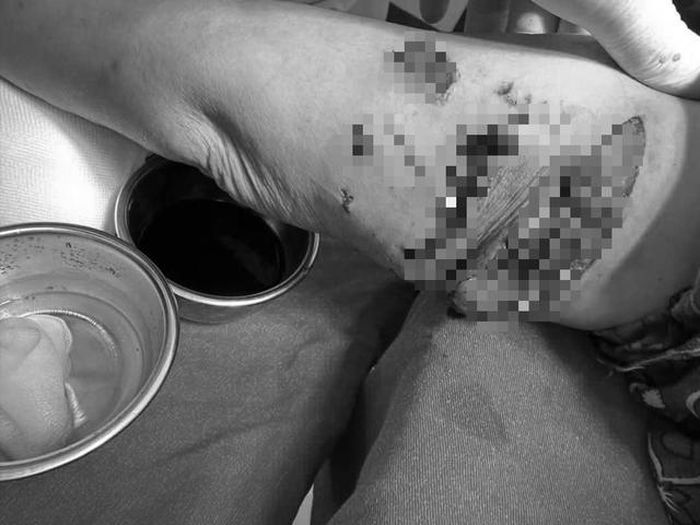 Vết thương sau khi bị chó cắn khá lớn. Ảnh: Văn Đức.