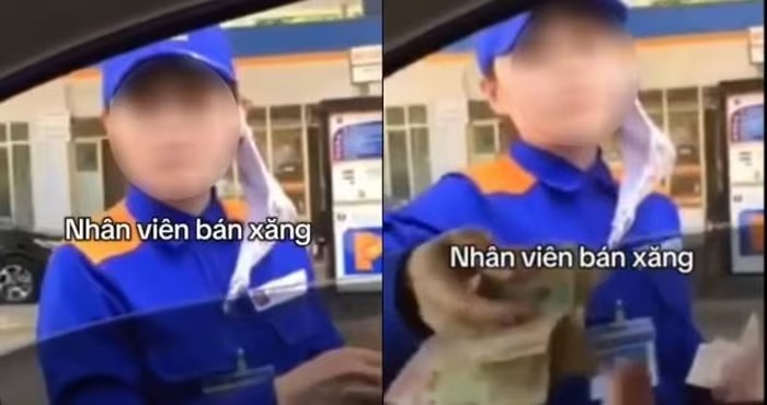 Ảnh nhân viên bán xăng trong clip xôn xao mạng xã hội gần đây (ảnh cắt từ clip)