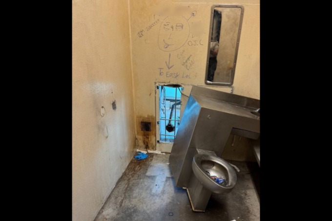 Nhóm phạm nhân này thoát khỏi phòng giam qua một lỗ hổng hình chữ nhật được khoét phía sau bồn vệ sinh tại một buồng ở tầng trệt. Nhóm viết những dòng như: "Quá dễ", "Chúng tôi vô tội" xung quanh lỗ hổng.