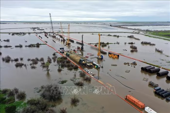 Cảnh ngập lụt sau mưa lớn do ảnh hưởng của bão tại bang California, Mỹ. Ảnh tư liệu: AFP/TTXVN
