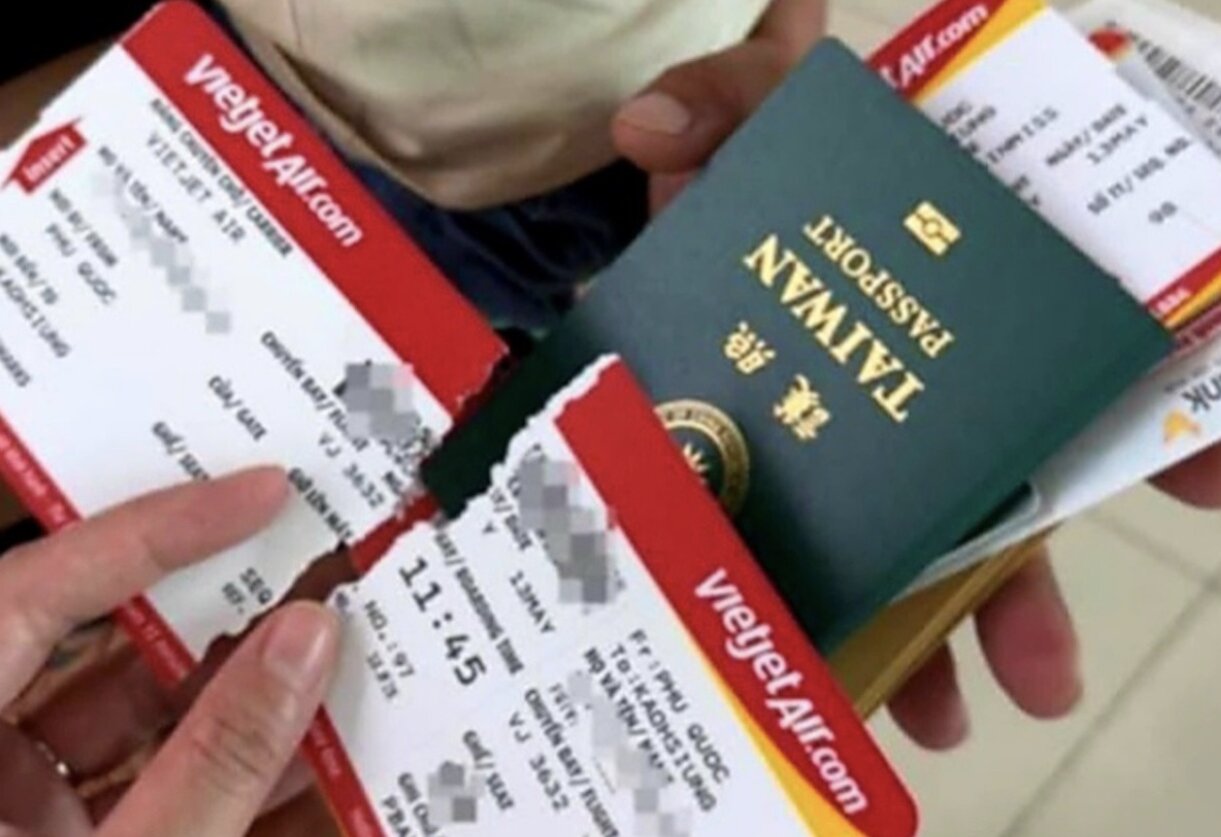 Thẻ lên máy bay bị xé rách tại sân bay quốc tế Phú Quốc. Ảnh: Chinatimes