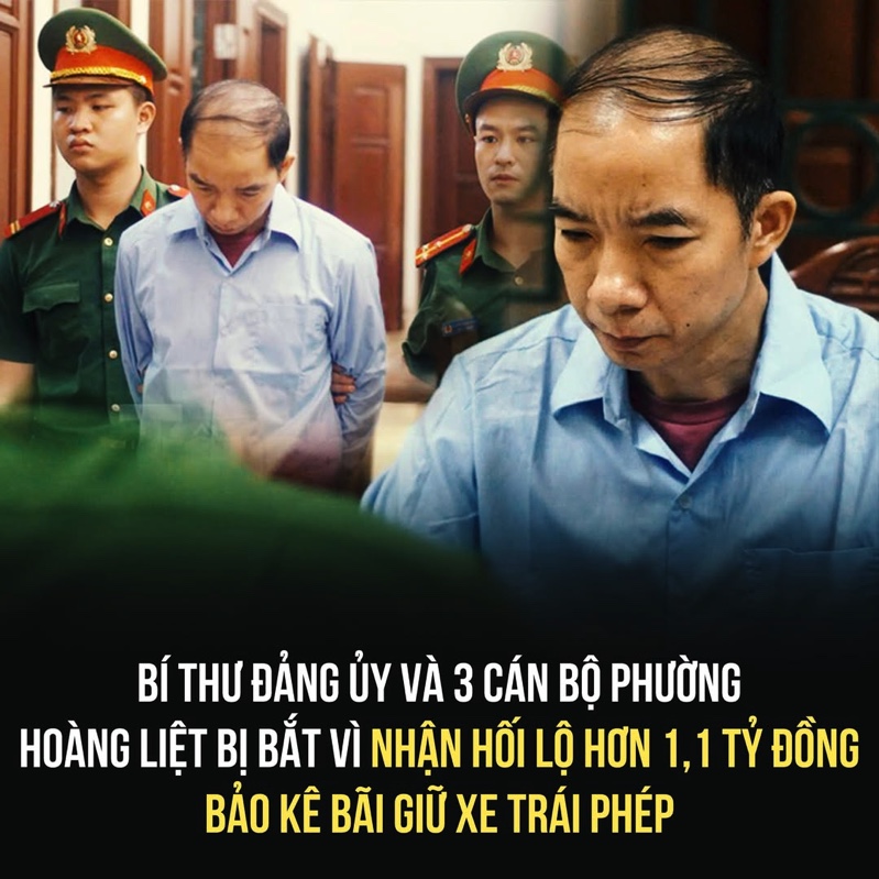 Từ năm 2020 đến nay, trong quá tŕnh quản lư trật tự đô thị trên địa bàn phường Hoàng Liệt, ông Nguyễn Xuân Chinh cùng 3 đồng phạm đă "ṿi tiền" chủ băi xe trái phép trên địa bàn và nhận hối lộ số tiền hơn 1,1 tỉ đồng.