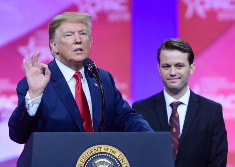 Tổng thống Mỹ Donald Trump và Hayden Williams tại Hội nghị Hành động Chính trị Bảo thủ ở Maryland năm 2019. Ảnh: Reuters