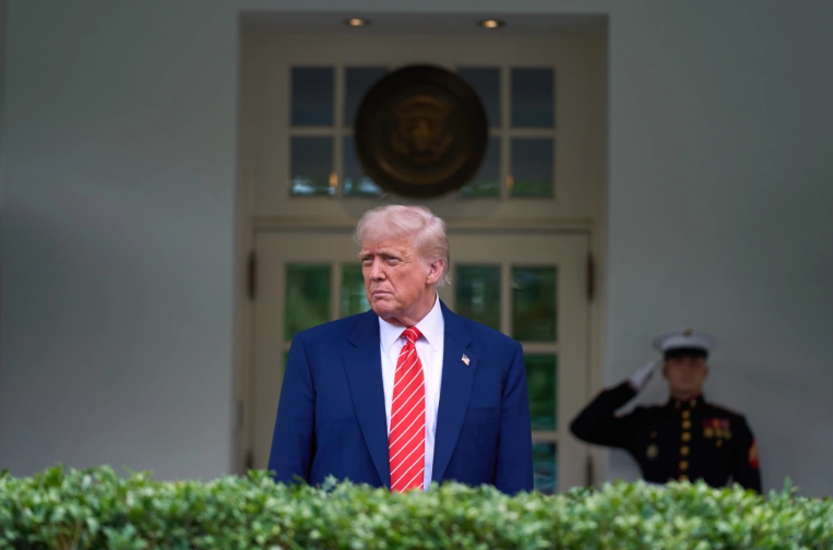 Tổng thống Mỹ Donald Trump bên ngoài Cánh Tây Nhà Trắng ngày 8/5. Ảnh: AP