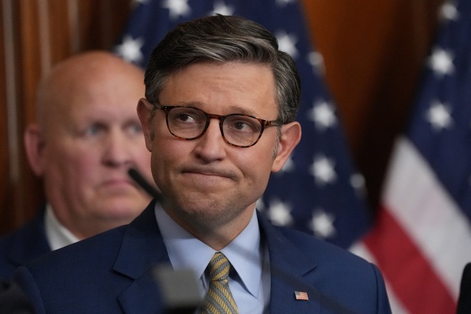 Chủ tịch Hạ viện Mike Johnson họp báo tại Đồi Capitol ngày 22/5. Ảnh: AFP