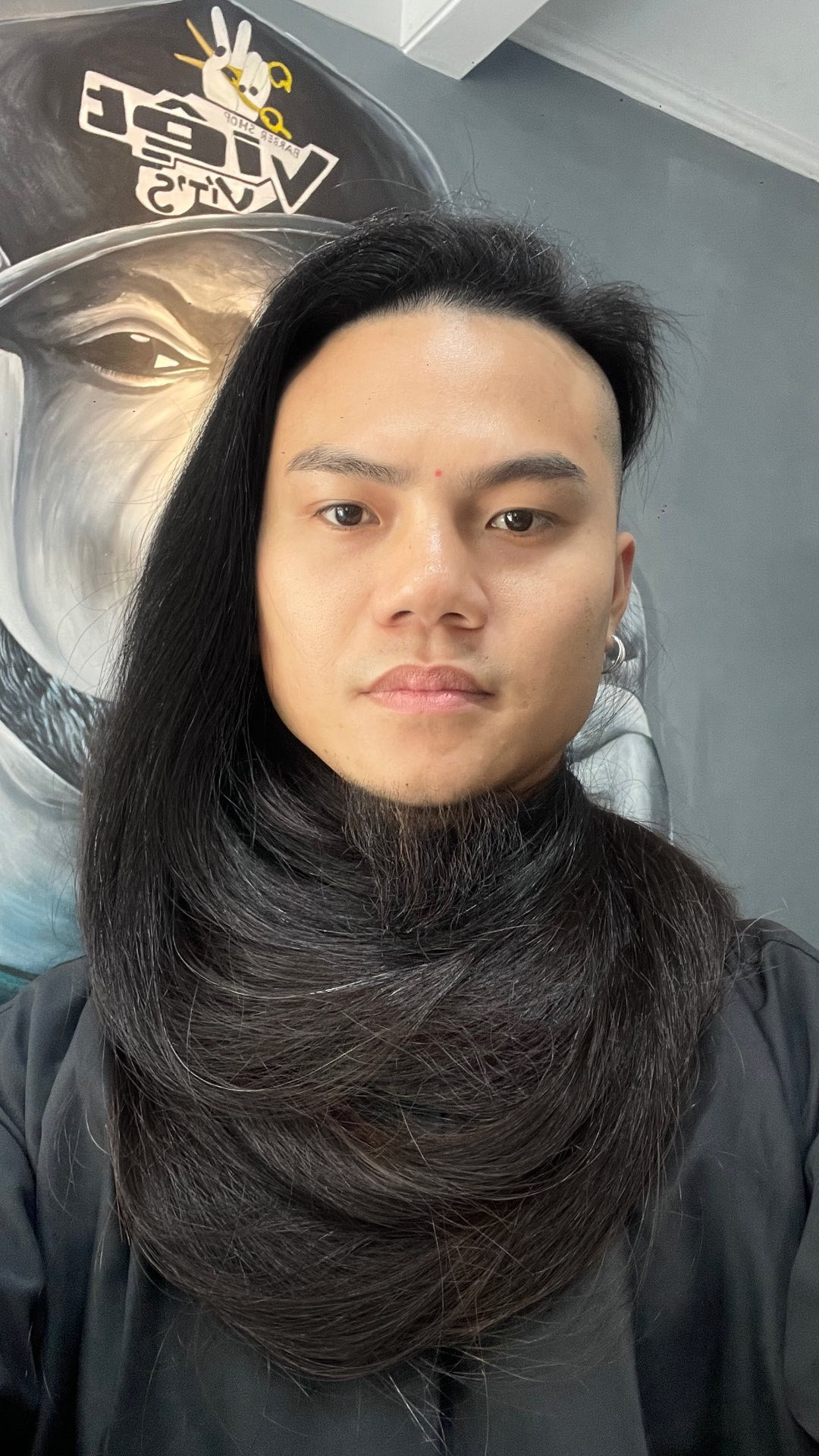 Vì mái tóc dày, anh thường cúi xuống gội trong bồn gội đầu ngay tại tiệm để có thể làm sạch sâu phần chân tóc. Anh cũng đứng lên ghế để ngọn tóc không chạm xuống nền nhà.