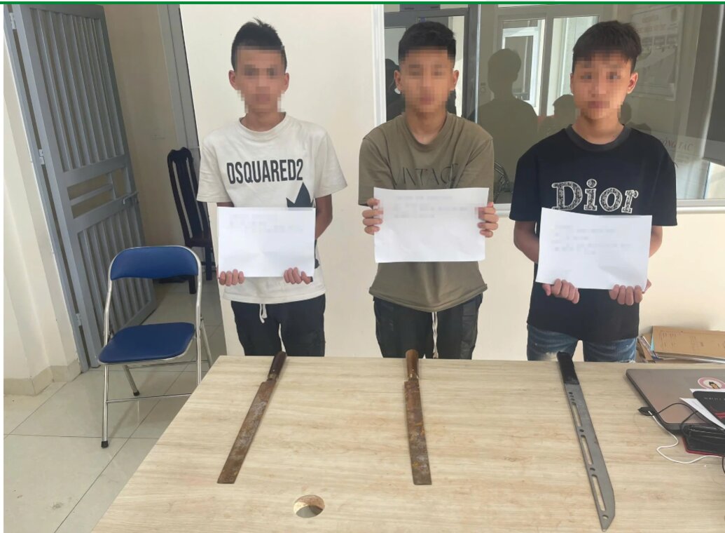 Nhóm 3 thiếu niên mang hung khí đi cướp ở Hà Nội bị cảnh sát bắt giữ. Ảnh: Đ.X.