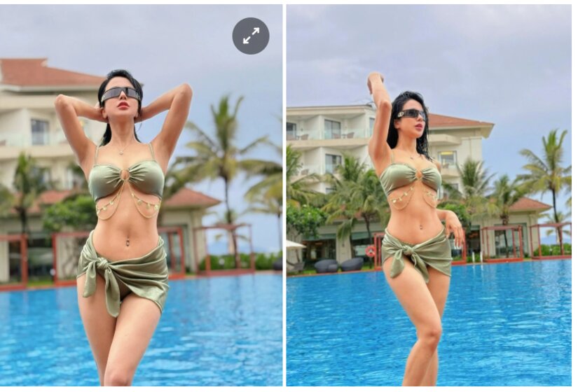 Diệp Lâm Anh khoe dáng tại bể bơi. Ảnh: FBNV.