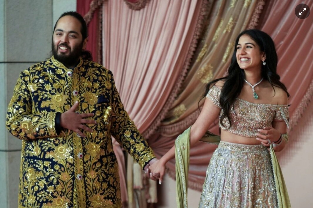 Vợ chồng con trai út của tỷ phú Mukesh Ambani. Ảnh: Reuters.