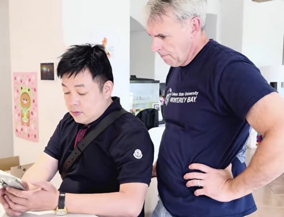 Nhân lần tới nhà, Quang Lê cầm luôn chiếc điện thoại của mình tới cầu cứu tỷ phú Gerrard Williams.