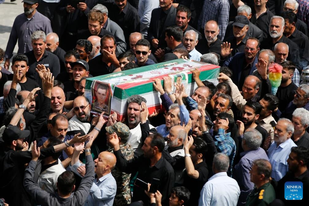 Lễ tang được tổ chức tại Tehran cho các nhà khoa học hạt nhân nổi tiếng và các sĩ quan cấp cao của Lực lượng Vệ binh Cách mạng Hồi giáo (IRGC) thiệt mạng trong các cuộc không kích của Hoa Kỳ và Israel. Ảnh do Xinhua cung cấp.