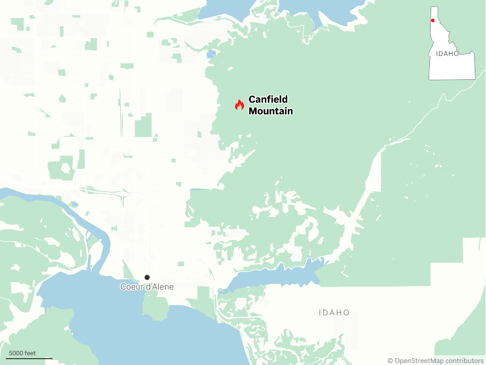 Khu vực xảy ra vụ phóng hỏa đốt rừng để tìm cách phục kích bắn các nhân viên cứu hỏa hôm 29/6/2025, tại Coeur d’Alene, Idaho. (Ảnh: Open Street Maps)