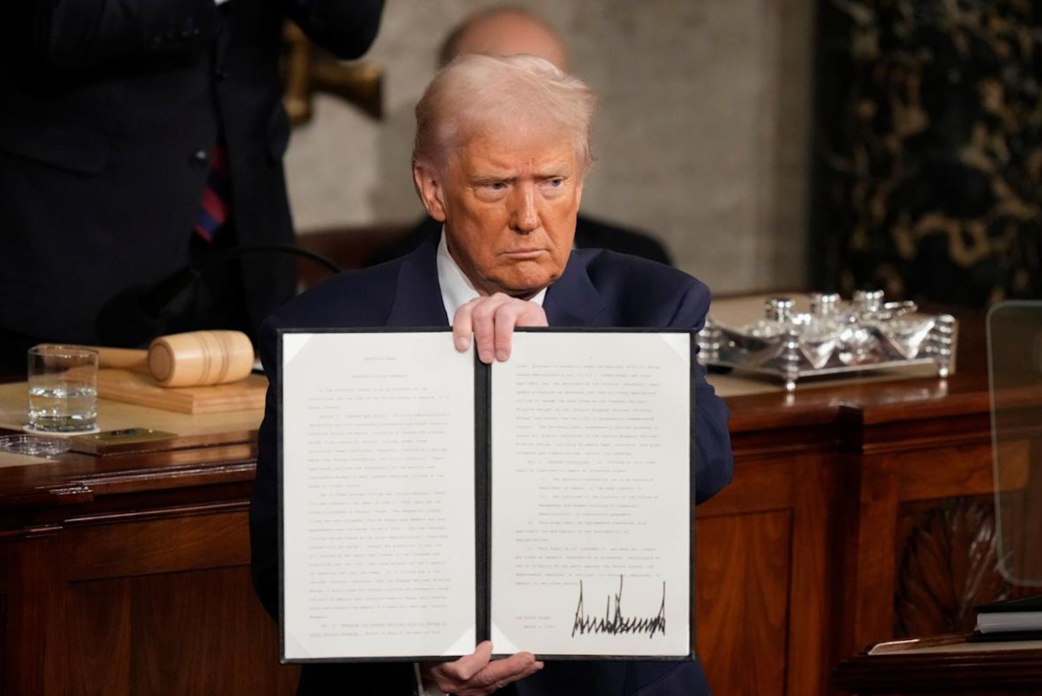 Tổng thống Mỹ Dobald Trump với một sắc lệnh hành pháp đã ký tại phiên họp chung của Quốc hội vào ngày 4/3/2025. Ảnh: Alex Brandon/AP