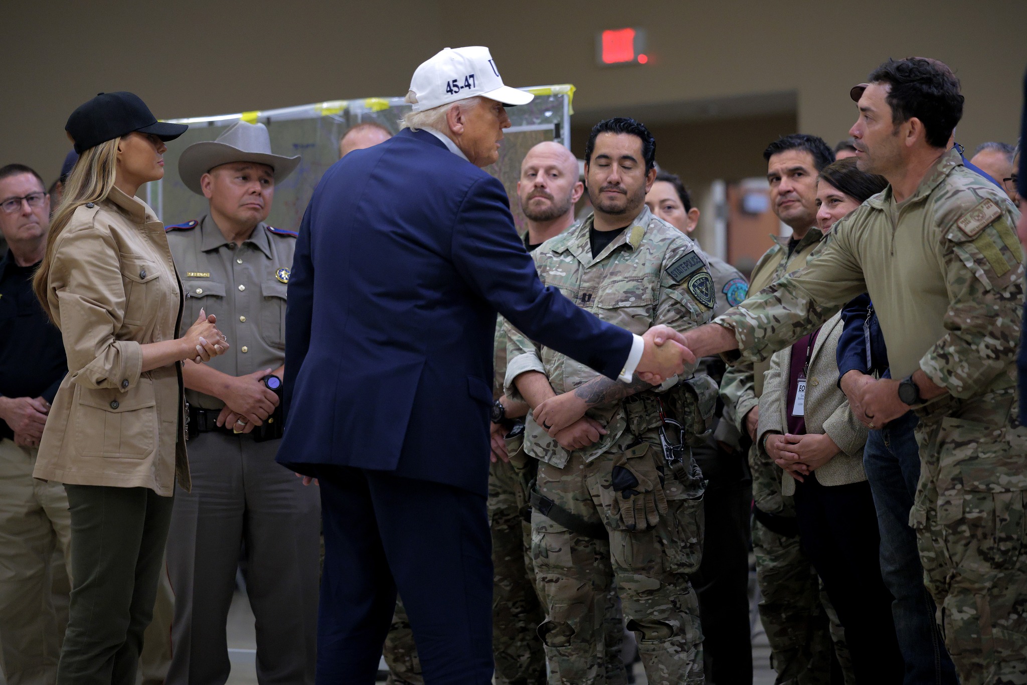 Hôm 11/7 (giờ Mỹ), ông Trump và Đệ nhất Phu nhân Melania đã gặp gỡ các quan chức địa phương tại hiện trường để khảo sát thiệt hại.