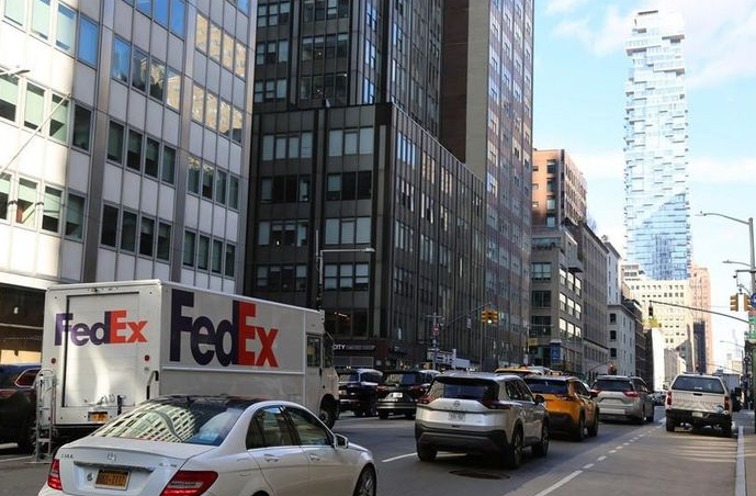 Các phương tiện lưu thông trên phố ở New York, Mỹ ngày 3/1/2025. (Ảnh: THX/TTXVN)