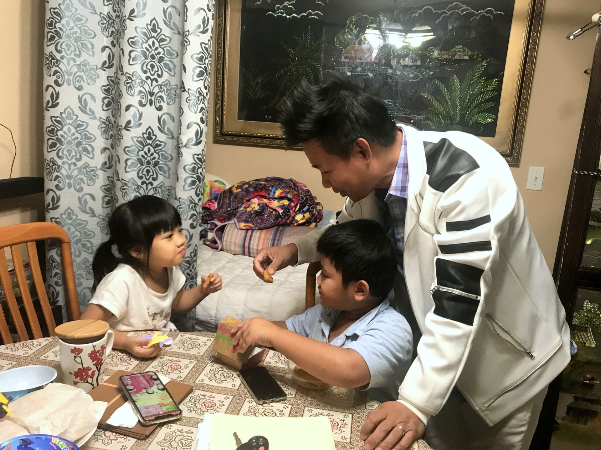 Bốn cháu bé, lớn nhất 13 tuổi, nhỏ nhất 4 tuổi đều đang ở nhà. Tiếp chuyện với chúng tôi là bà cụ ngoài 70 tuổi, là bà ngoại của chị Bảo Ly: “Từ hôm mẹ cháu bị đưa đi, tôi vội bay từ Maryland sang để chăm sóc các cháu. Những ngày đầu, các cháu khóc liên tục vì nhớ mẹ, cứ một đứa khóc là cả ba đứa kia khóc theo.”